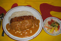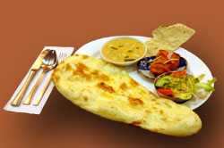 | デラックスセット\1050 チキンカレー ミニナン(+\100で大きくできます) チキンタンドリー・ミックスサラダ |